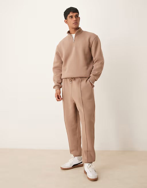 Elevate your comfort and style with this premium men's sports set, designed to fit all your daily activities. This costume is made of high-quality materials that ensure maximum warmth and softness, whether you are relaxing at home, doing light exercise, or going out for a casual outing. The sweatshirt has a stylish design with a quarter zip at the neck, which lends a modern touch and is easy to put on and take off, while the pants offer a relaxed fit that allows for complete freedom of movement. Available in a range of attractive colors, this set is the perfect addition to your wardrobe for the fall and winter season.